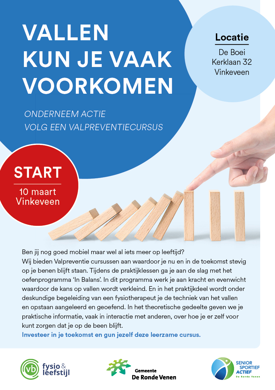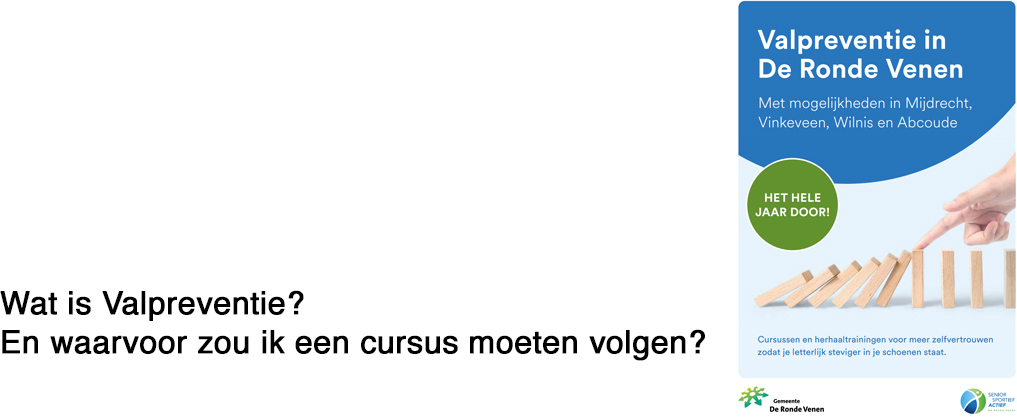 We spreken van een Valpreventiecursus in De Ronde Venen als we de nummer 1, In Balans, en de nummer 2, Vallen Verleden Tijd, gecombineerd geven.