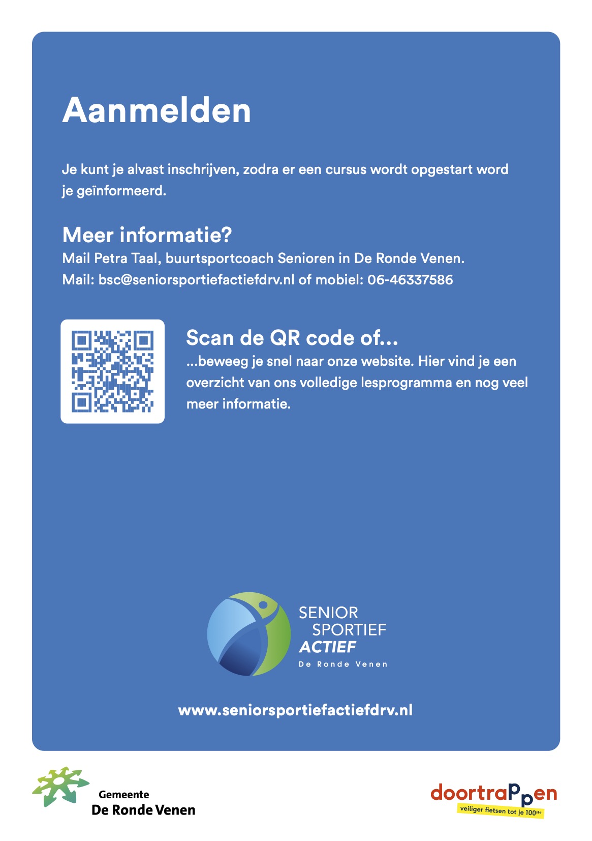 Heb je nog een vraag? Stel hem aan Petra Taal via mail BSC@seniorsportiefactiefdrv.nl